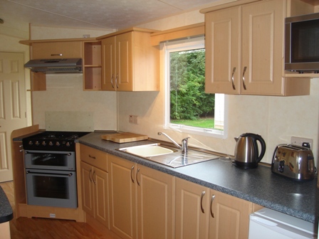 Oven with extractor hood, fridge, microwave, kettle & toaster plus plenty of pots & pans as well as ample cupboard space. The kitchen is positioned so even if you are the reluctant cook you won't feel left out! You can still enjoy chatting to your family in the lounge or keep a watchful eye on the children playing outside. As we use the caravan for our own family the caravan is strictly no smoking & although we have pets ourselves for the sake of guests with allergies we do not allow pets in the caravan.